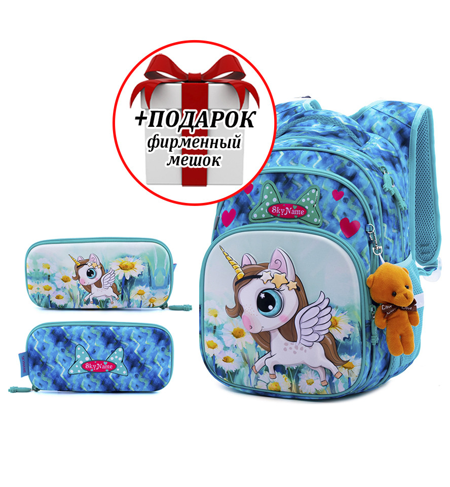 Шкільний набір: Ортопедичний рюкзак + пенал дівчинці SkyName з малюнком єдинорога + ПОДАРУНОК/ Портфель для школи 1-4 клас